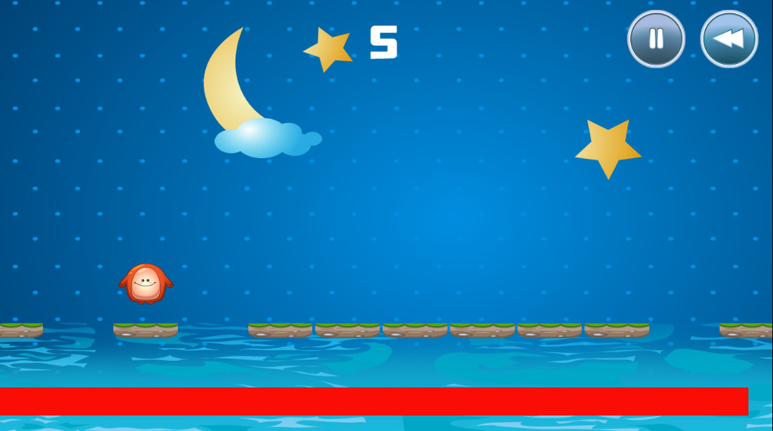 Вы очень милое странное маленькое создание, и вам нужно попасть на другой берег озера! Но вы не умеете летать, поэтому вам нужны прыгать по платформам, которые находятся на поверхности воды. Мало того, что вы не можете летать, плавать вы тоже не умеете. Сделайте все возможное, чтобы заработать как можно больше очков и не упасть в озеро!