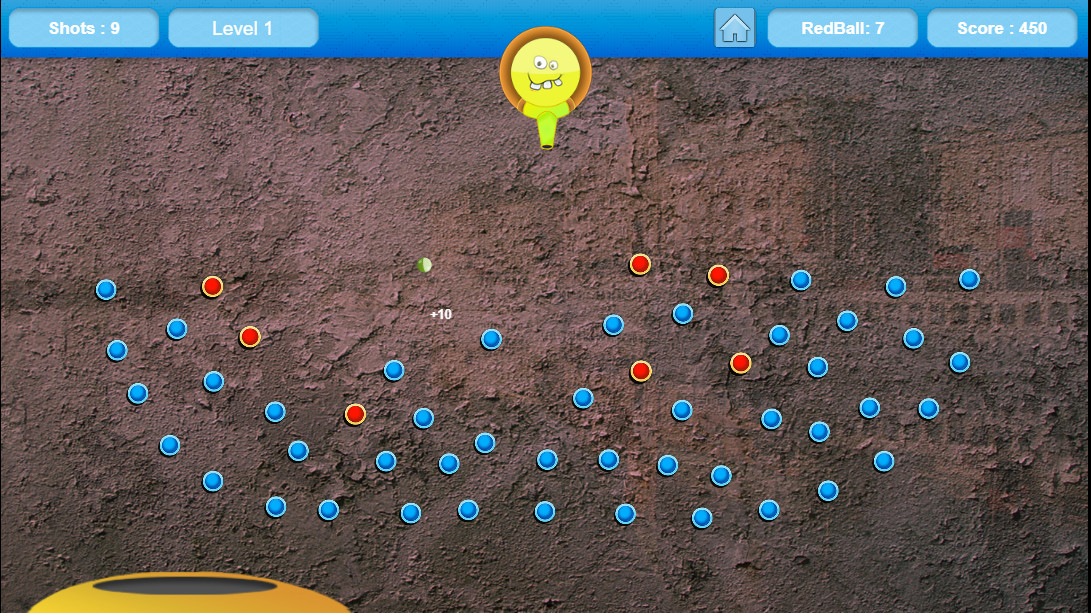 В этой игре вы управляете пушкой, она расположена сверху экрана. Ниже на экране находятся синие и красные шары, вам нужно стрелять и уничтожать красные шары. Вы также можете уничтожать синие шары, чтобы заработать больше очков, но главная ваша цель - красные. Внизу экрана двигается платформа. Если шар, которым вы выстрелили, попадает в нее, вы получите дополнительный выстрел. Вы проиграете, если у вас закончатся все выстрелы, так что считайте их и постарайтесь заработать как можно больше очков!