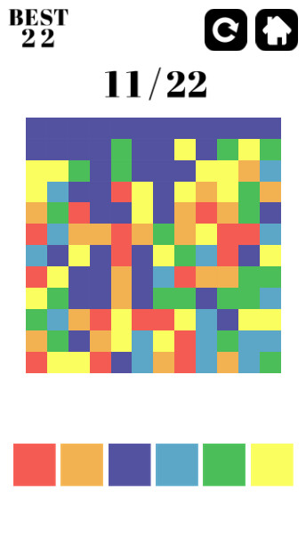 | Эта игра имеет простую, но интересную механику. Вы начнете с верхнего правого квадрата, вы должны сопоставить его цвет с цветом окружающих квадратов. Для этого вам нужно выбрать квадрат в нижней части экрана, который будет соответствовать цвету одного из окружающих квадратов. Всего используется 6 цветов, и ваша задача состоит в том, чтобы все квадраты к концу игры были одного цвета, и вам нужно будет это сделать за 22 хода или меньше! |