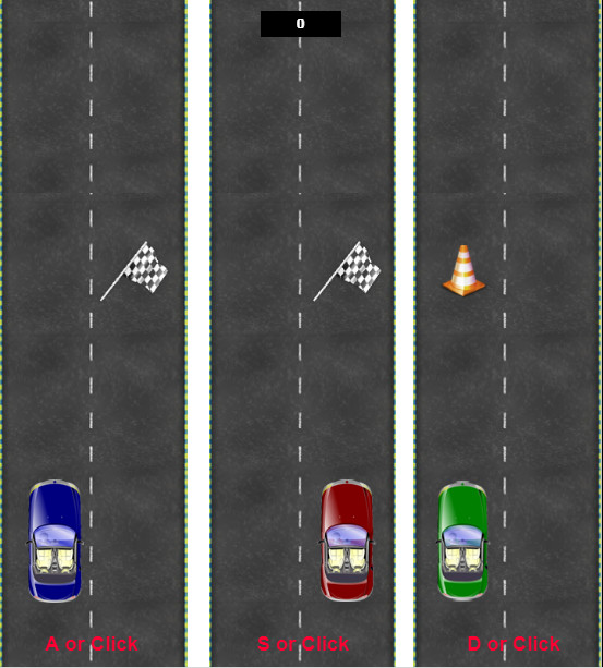 В этой игре вам нужно управлять тремя автомобилями. Как и в других подобных играх, вам нужно собирать флаги, уклоняться от препятствий и постараться пройти как можно дальше. Вы проиграете, если пропустите флаг или если заденете препятствие. Обратите внимание, что вам нужно управлять всеми автомобилями одновременно, и это не так просто сделать!