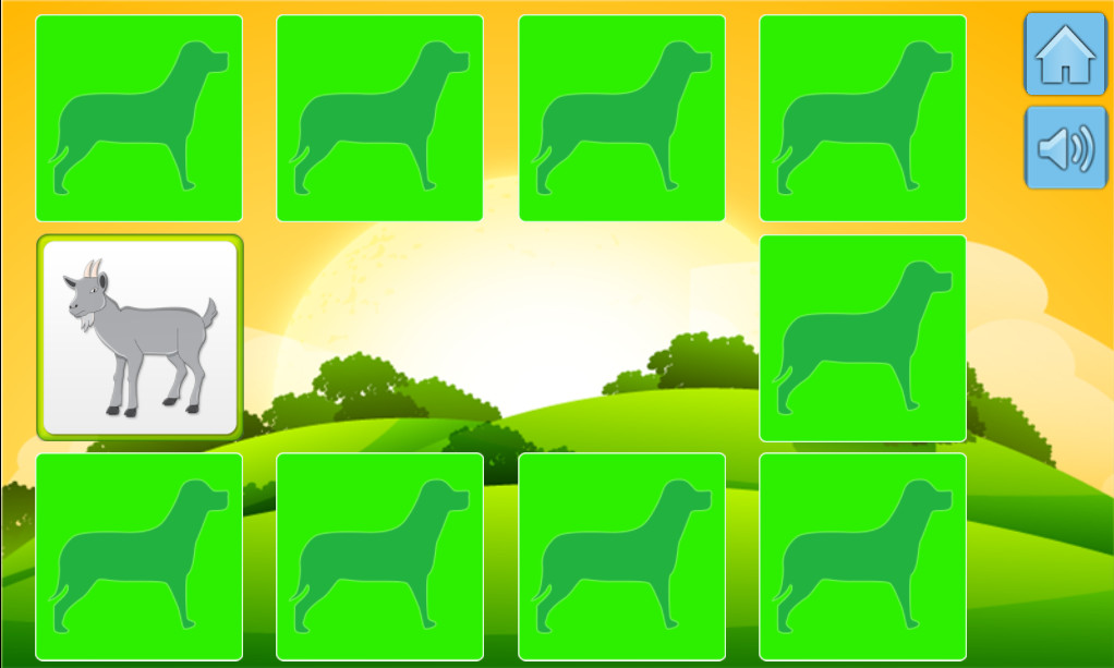 Это детская игра о животных, которых выращивают в деревне. Эта игра может быть полезна в обучении маленьких детей и тренировке памяти. Вам нужно будет найти пары карточек с одинаковым изображением животных. В этой игре три уровня сложности – Легкий, Средний и Сложный. Также есть режим Обучение, где вы сможете ознакомиться с животными и услышать их названия. Игра закончится, когда вы найдете все пары карточек на поле.