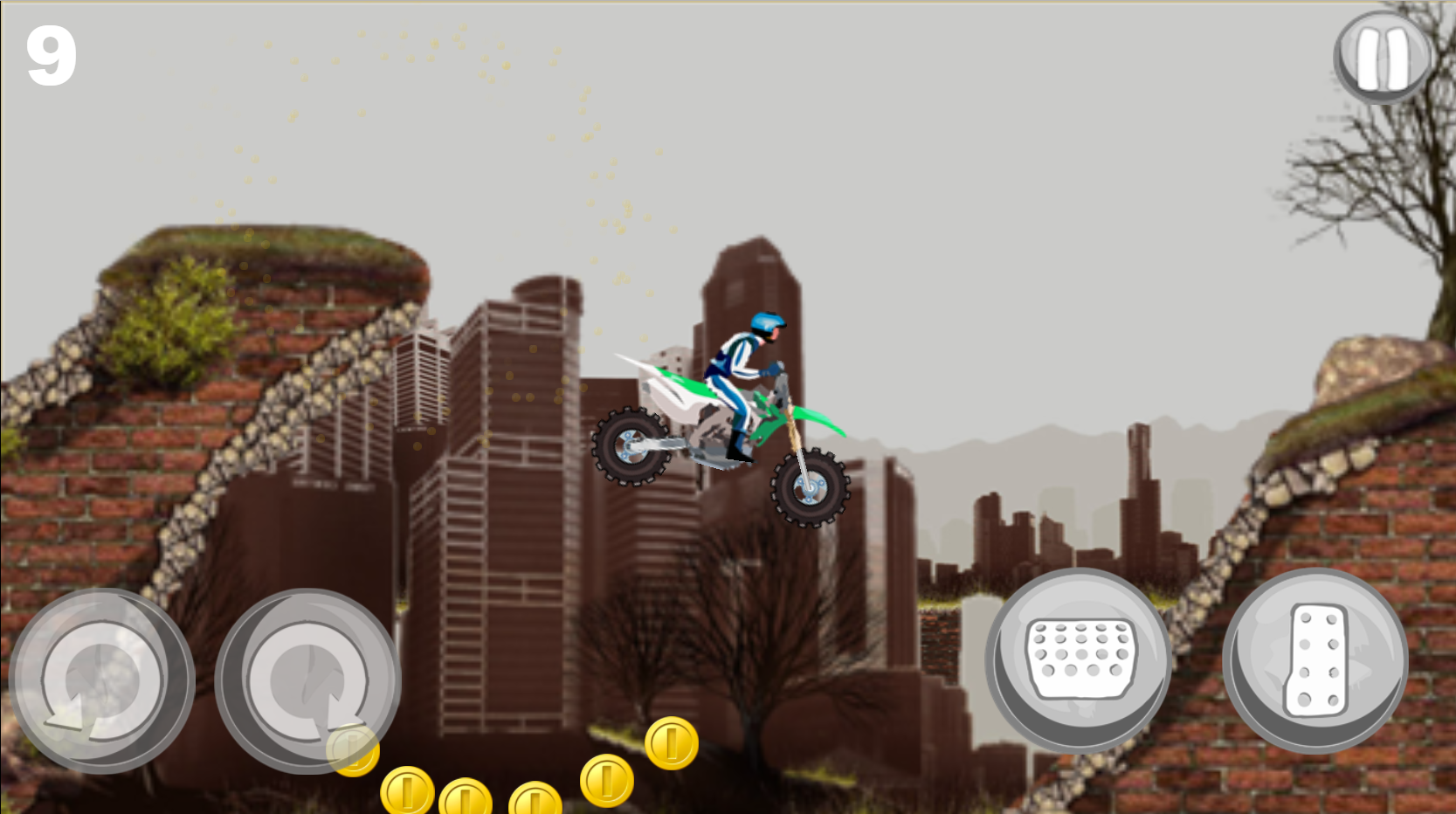 В этой игре вы станете мотоциклистом. Вам предстоит доехать до финиша, не застряв, и собрать как можно больше монет! На каждом новом испытании вас ждут новые препятствия! Используйте "стрелочки" или кнопки на экране, чтобы управлять вашим мотоциклом.