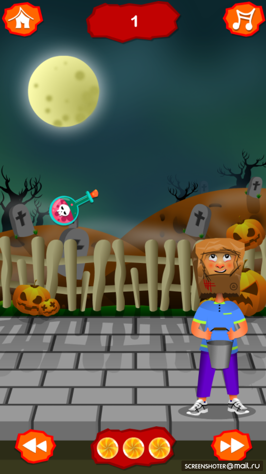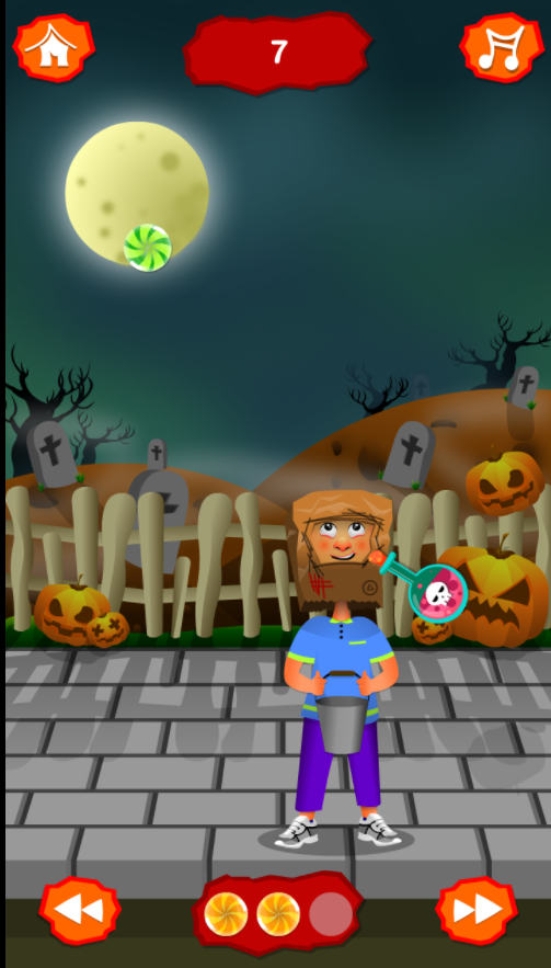 В игре при помощи мышки или стрелок, вам предстоит поймать все конфеты. Опасайтесь бутылок с ядом и собирайте только конфеты. Со временем игра начинает ускоряться и играть становится сложнее. Поймайте все конфеты и станьте королём Хэллоуина.